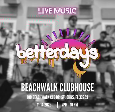 Experience an unforgettable evening at the Beachwalk neighborhood clubhouse, where a full band will set the stage for an exhilarating live music performance. Gather with friends and family as the infectious rhythms and captivating melodies fill the air, creating a vibrant atmosphere that resonates with the spirit of community. The clubhouse, nestled in the heart of Beachwalk, offers an inviting setting for residents and visitors alike to enjoy an array of musical genres. Whether you’re a fan of rock, jazz, or pop, there’s something for everyone. Bring your dancing shoes and get ready to sway to the beat while soaking in the sun and the stunning surroundings. Join us for a night of energy, camaraderie, and spectacular live music that you won't want to miss!